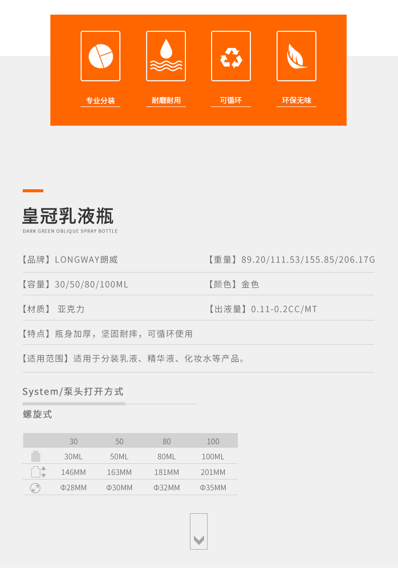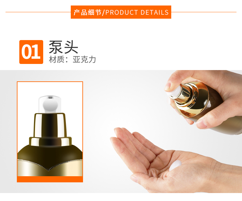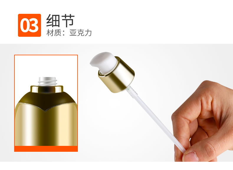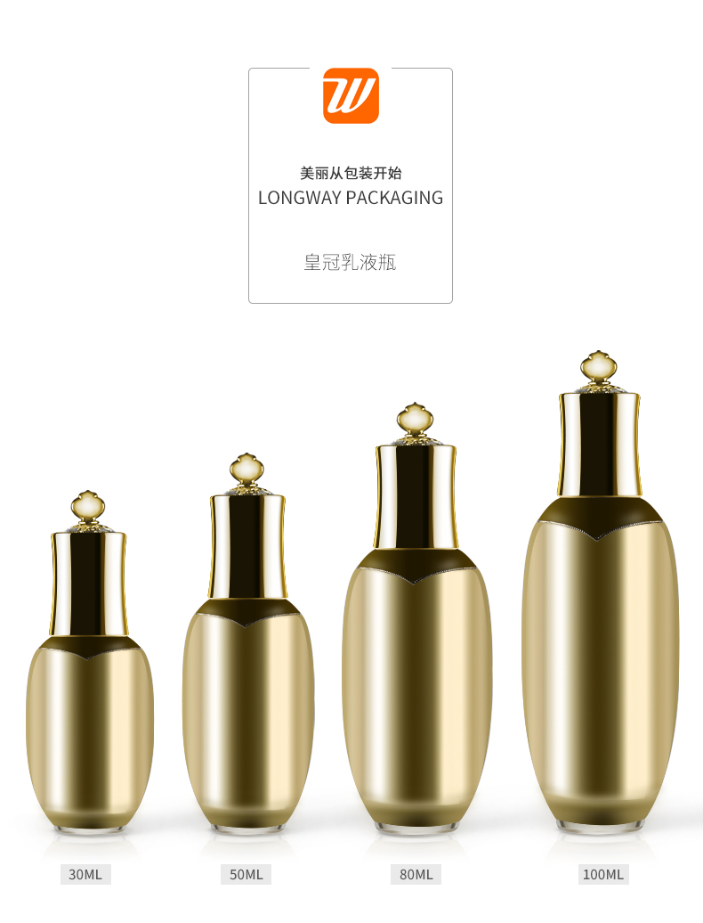 • 规格 30ml皇冠亚克力乳液瓶   50ml皇冠亚克力乳液瓶   80ml皇冠亚克力乳液瓶   100ml皇冠亚克力乳液瓶