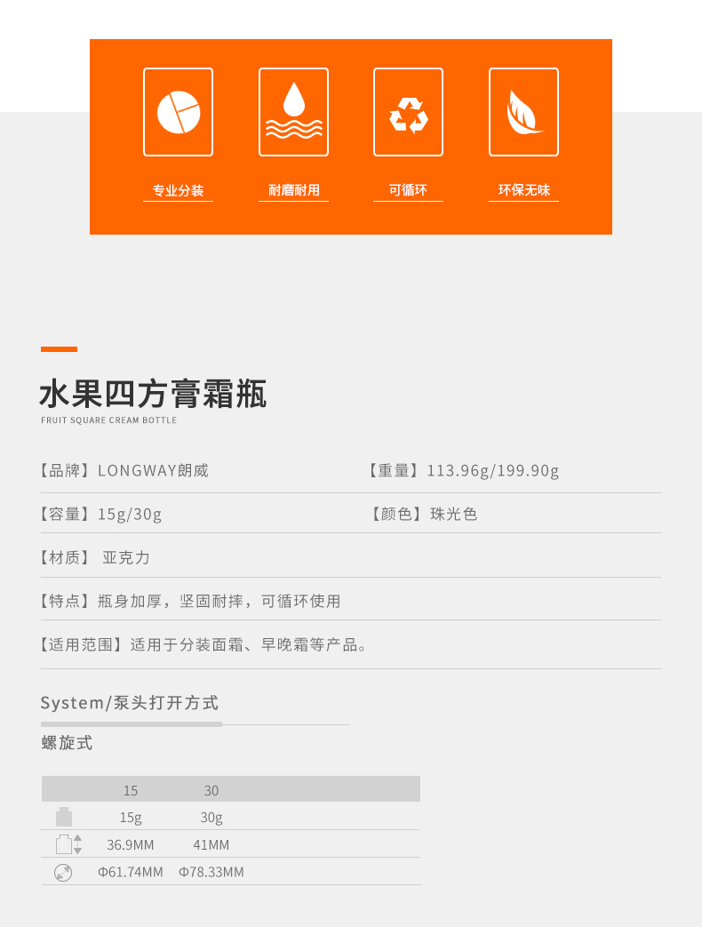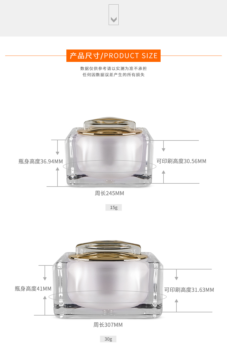• 产品名称15/30g四方亚克力膏霜瓶水果盘
