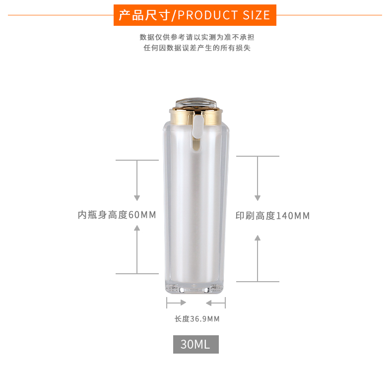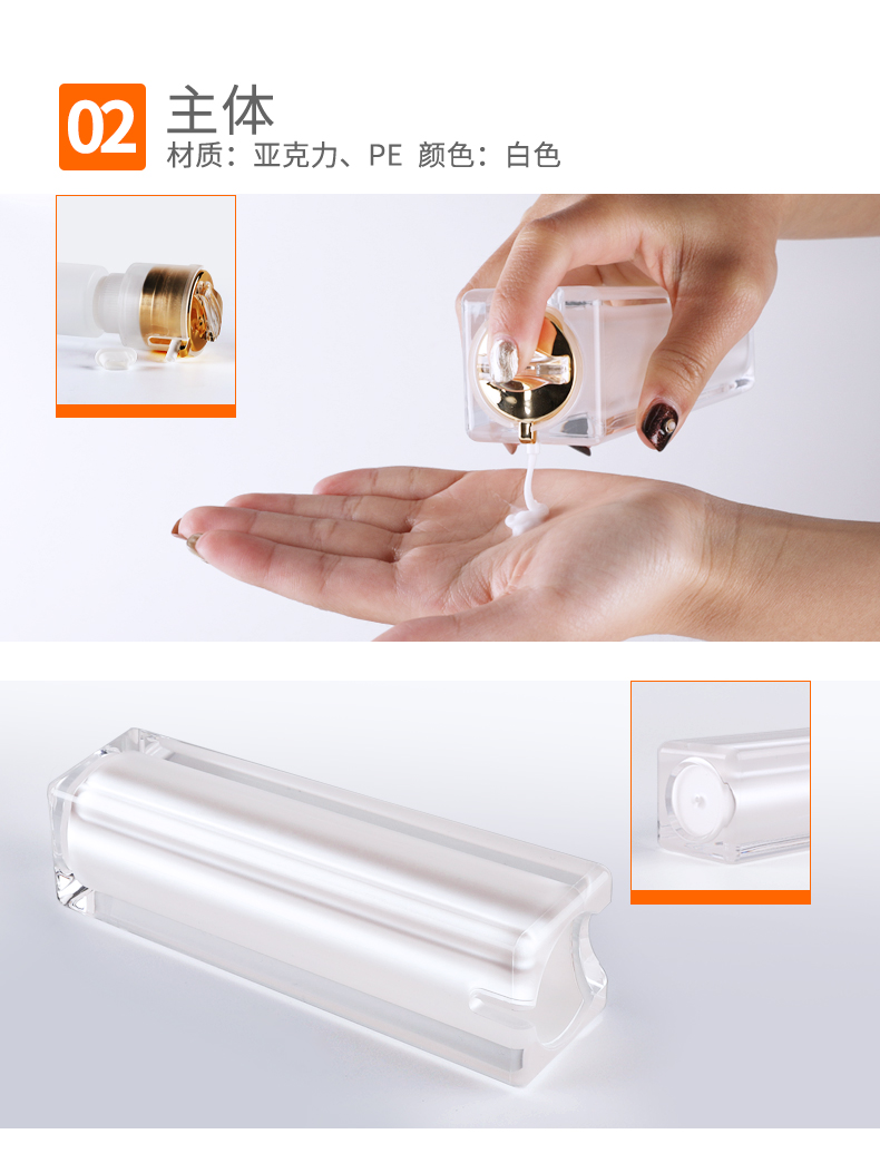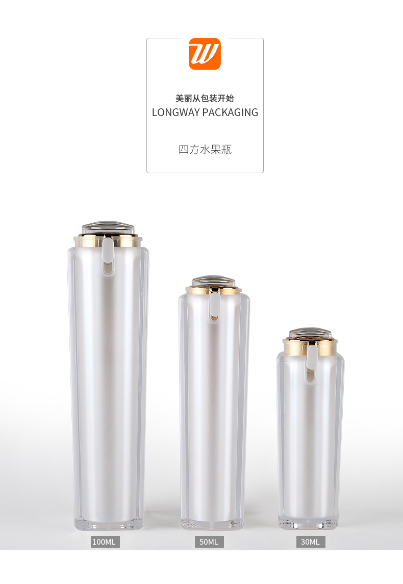 • 规格30ml四方珠光亚克力膏霜瓶  50ml四方珠光亚克力膏霜瓶  100ml四方珠光亚克力膏霜瓶