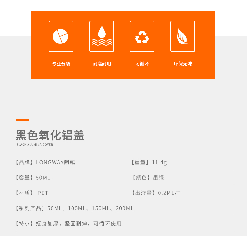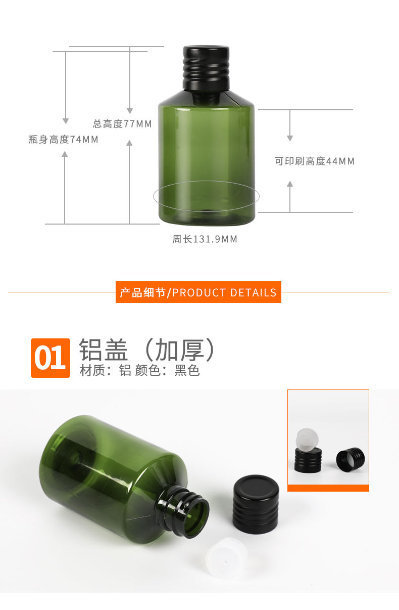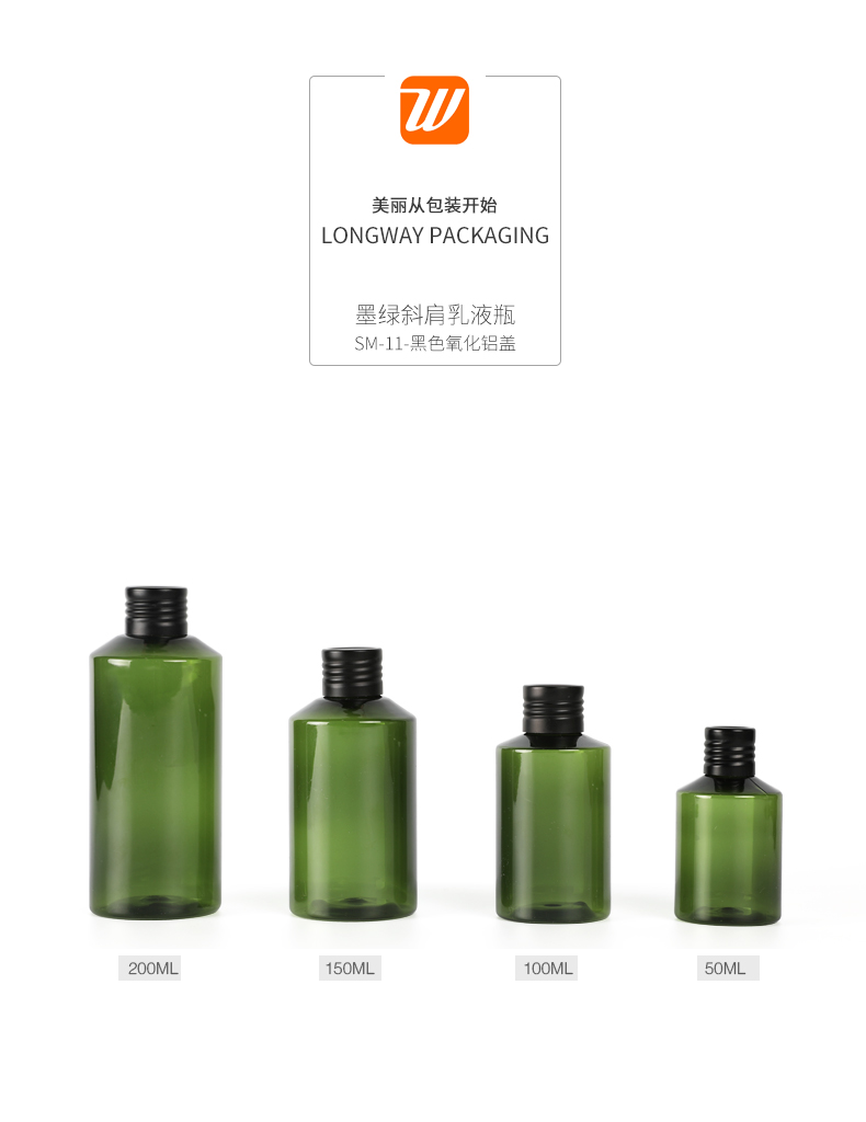 • 规格50ml墨绿斜肩+黑色氧化铝盖  100ml墨绿斜肩+黑色氧化铝盖  150ml墨绿斜肩+黑色氧化铝盖  200ml墨绿斜肩+黑色氧化铝盖