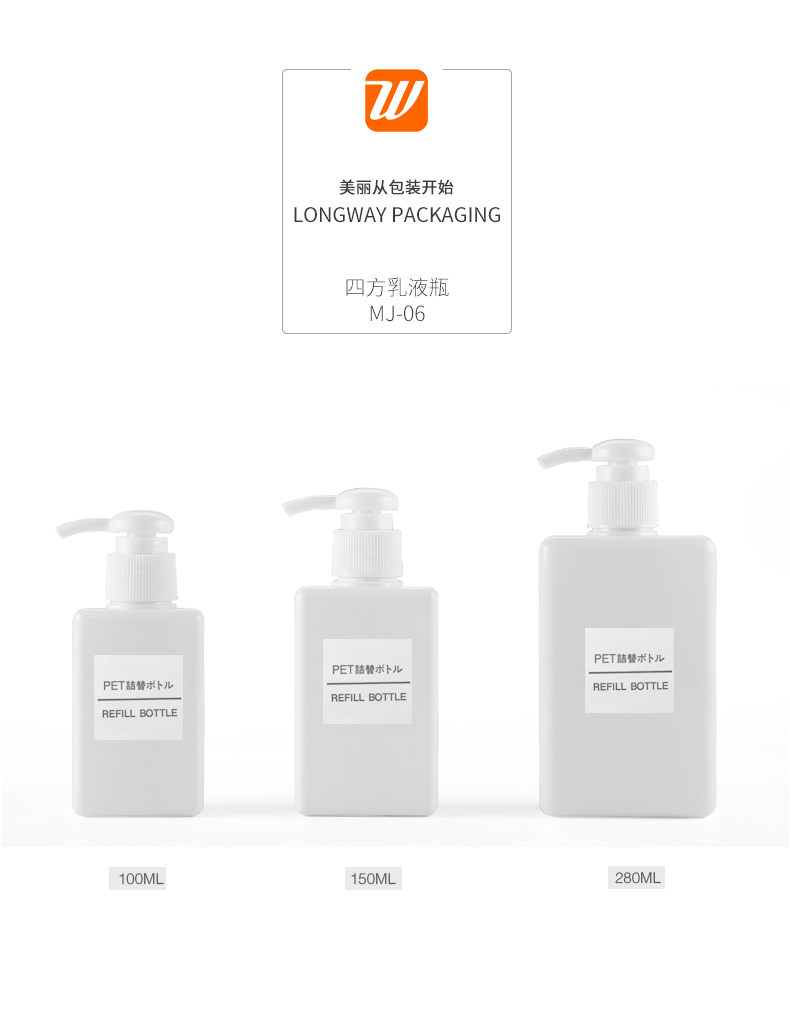 • 规格100ML透明四方乳液瓶  100ML白色四方乳液瓶  100ML墨绿色四方乳液瓶  100ML棕色四方乳液瓶  100ML粉色四方乳液瓶(头透明)  100ML淡蓝色四方乳液瓶(头透明)
