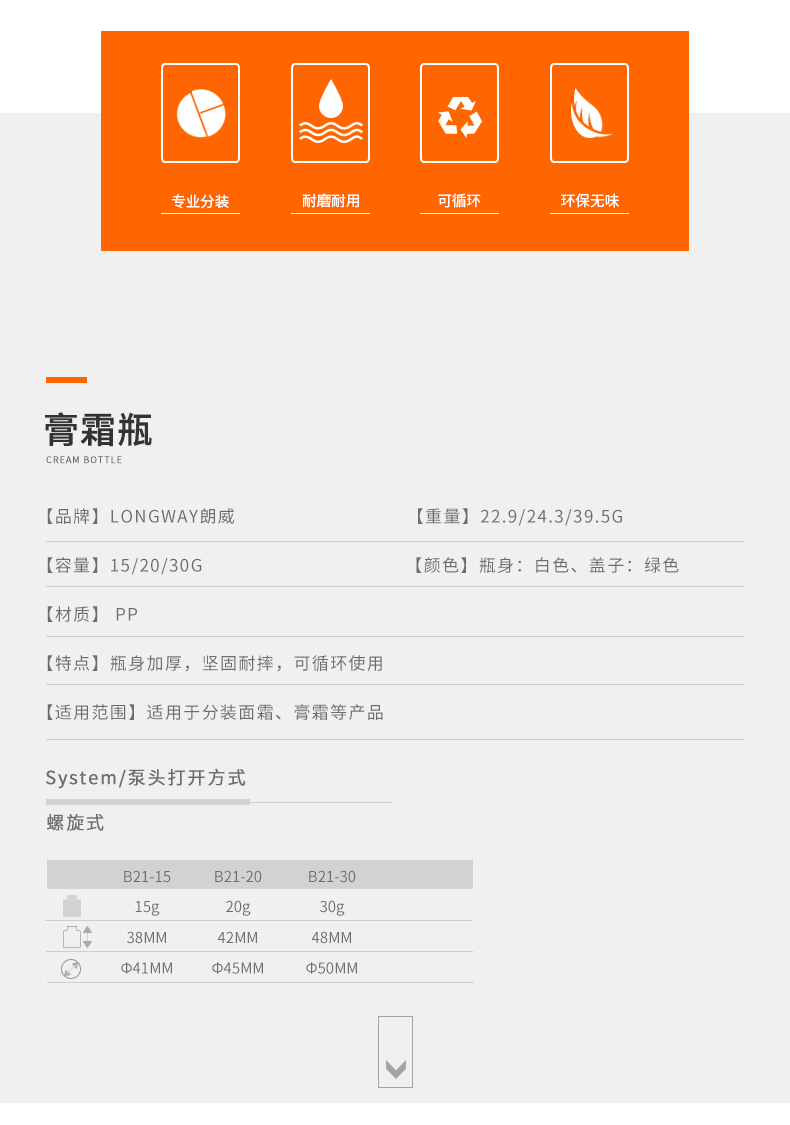 • 规格15g  20g  30g