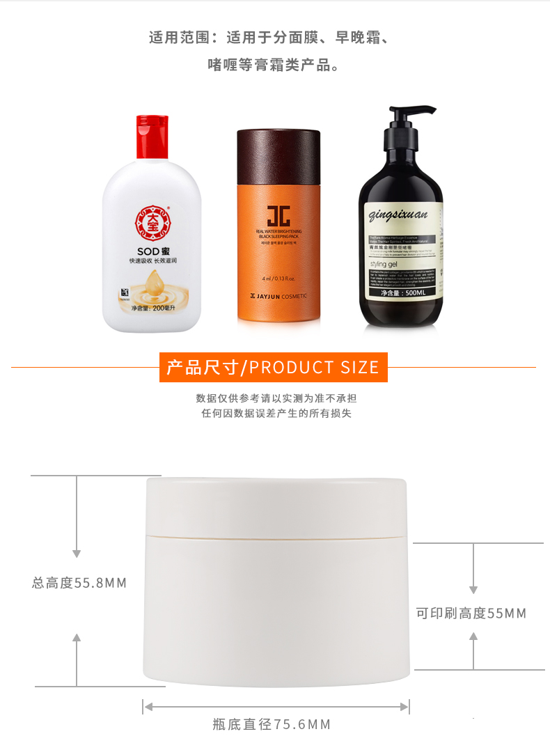 • 产品名称30-120g光面大白瓶 膏霜瓶