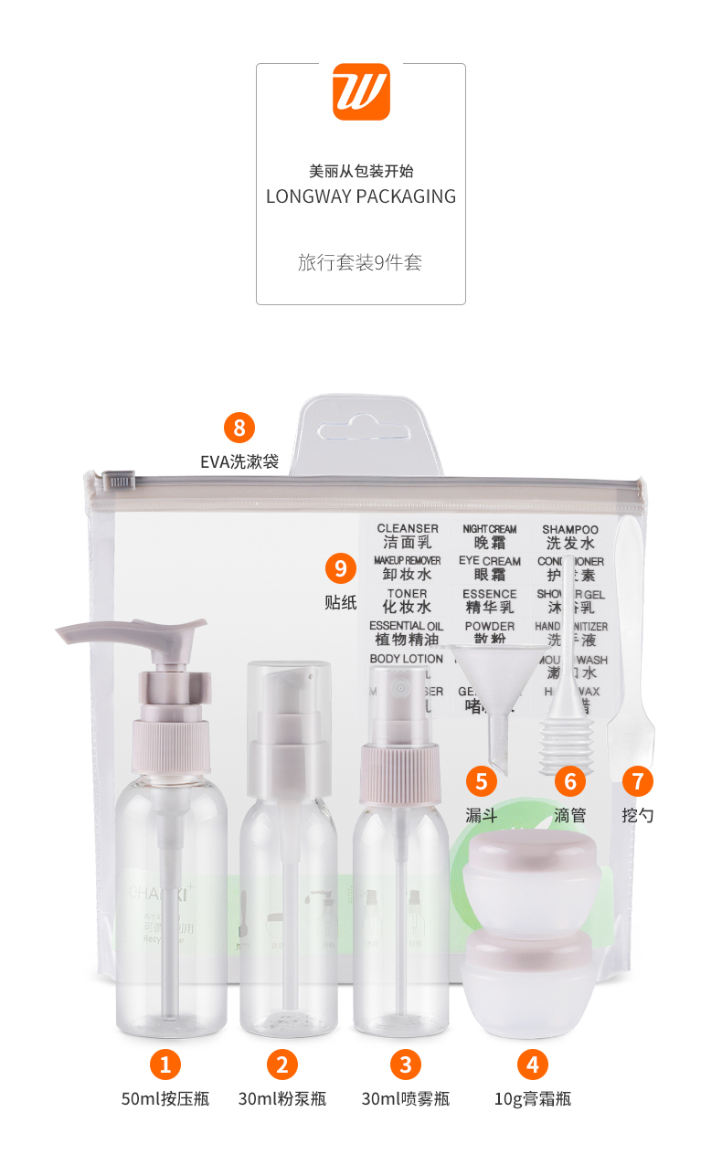 • 产品名称活力蓝/俏丽粉 旅行套装九件套
