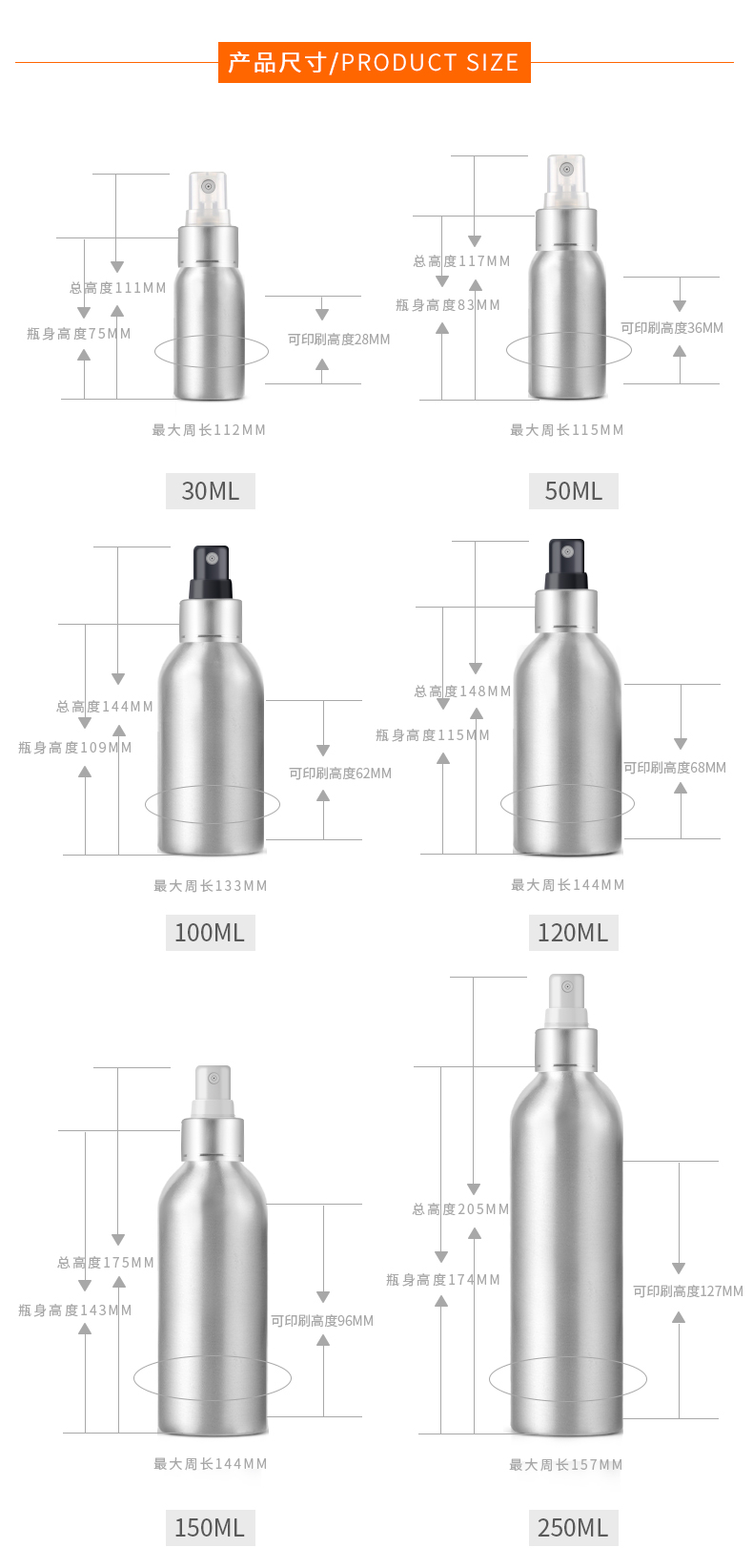 • 产品名称30-250ml亚银头喷雾铝瓶