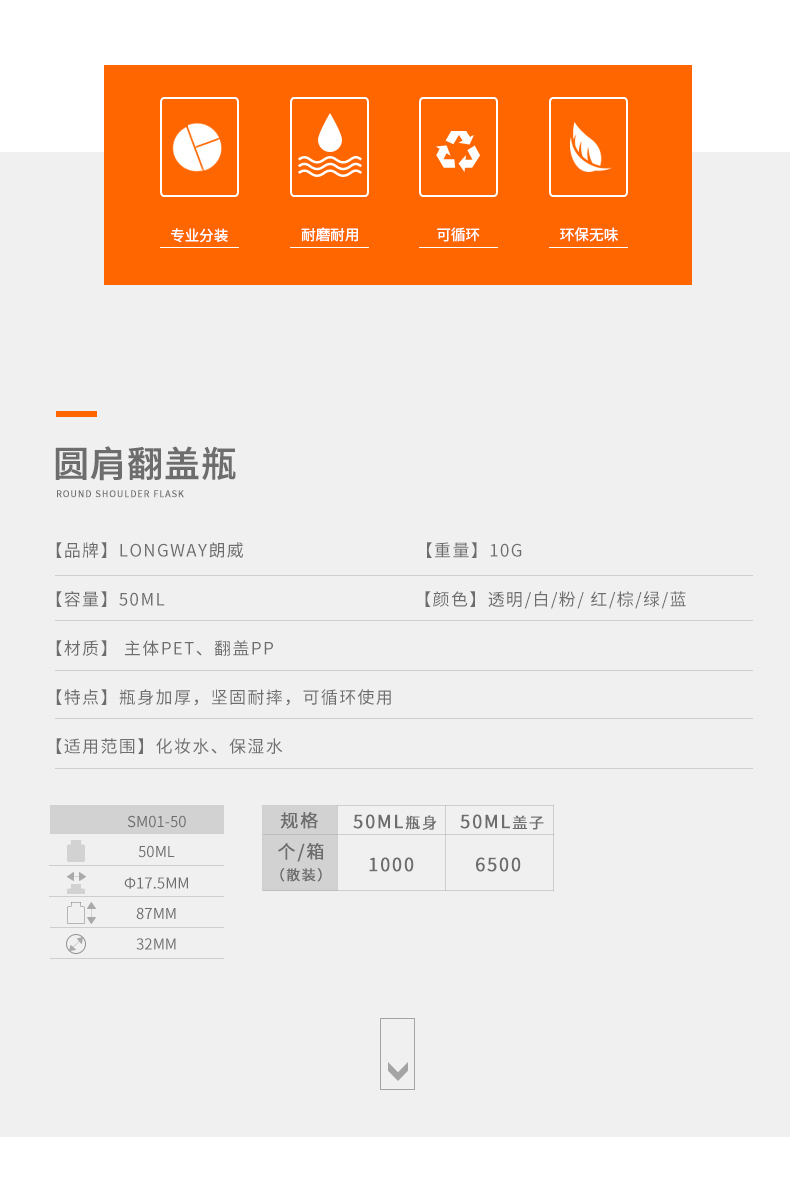 • 产品名称50ml圆肩PET翻盖瓶