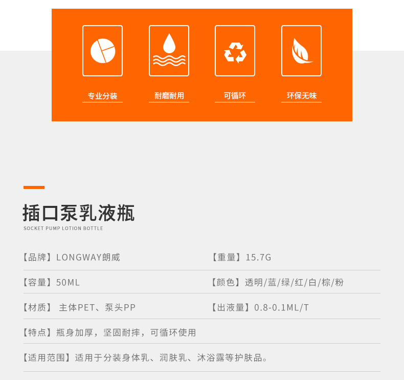 • 规格 50ML/透明瓶+R20透明油泵   50ML/透明瓶+R20白色油泵   50ML/粉色瓶+R20透明油泵   50ML/粉色瓶+R20白色油泵   50ML/棕色瓶+R20透明油泵   50ML/棕色瓶+R20白色油泵   50ML/蓝色瓶+R20透明油泵   50ML/蓝色瓶+R20白色油泵   50ML/红色瓶+R20透明油泵   50ML/红色瓶+R20白色油泵   50ML/白色瓶+R20透明油泵   50ML/白色瓶+R20白色油泵   50ML/绿色瓶+R20透明油泵   50ML/绿色瓶+R20白色油泵