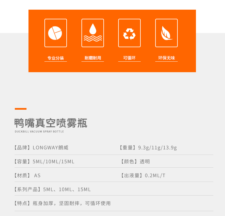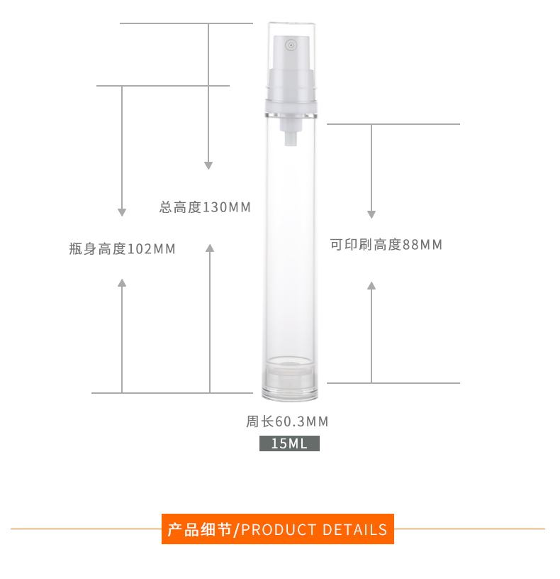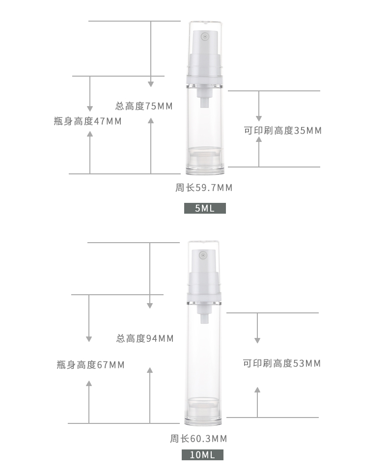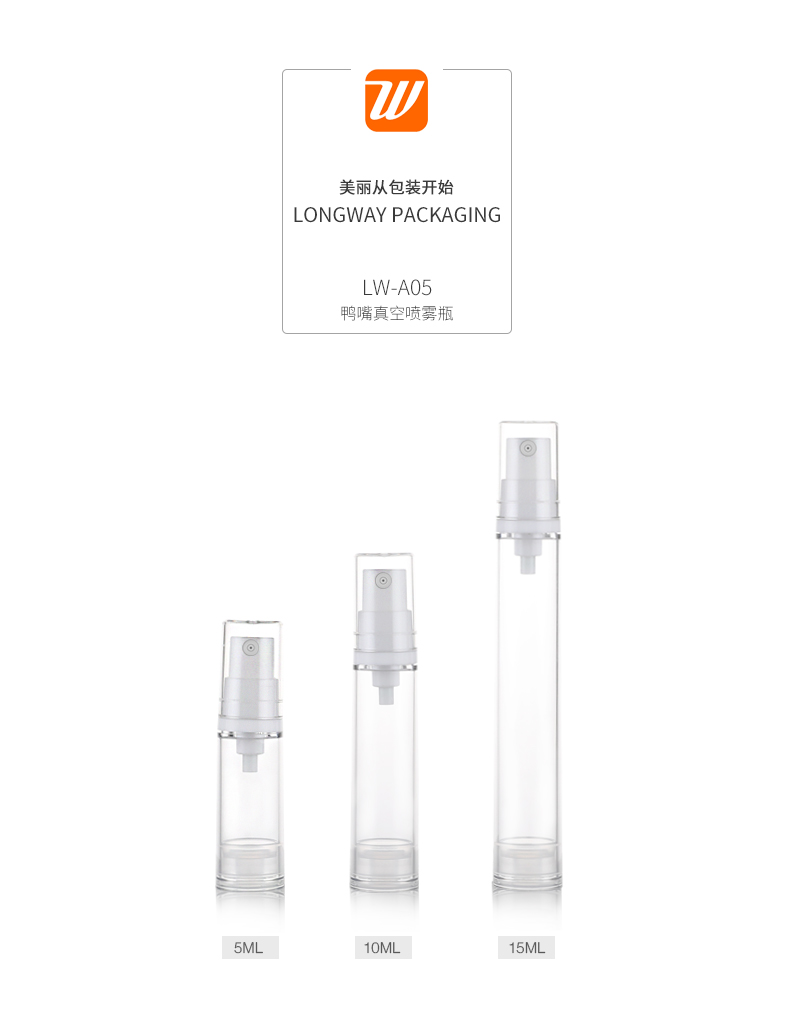 • 规格 5ML真空喷雾瓶   10ML真空喷雾瓶   15ML真空喷雾瓶