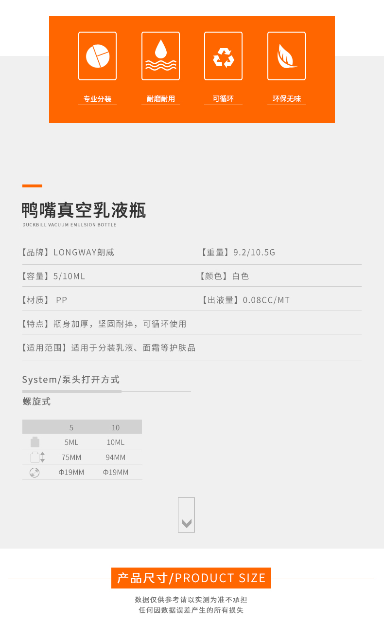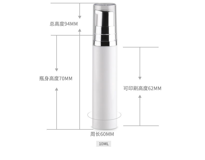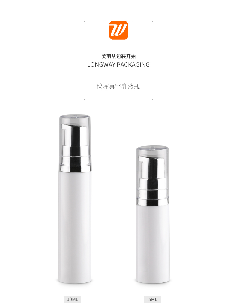 • 规格5ml白色鸭嘴真空乳液瓶  10ml白色鸭嘴真空乳液瓶