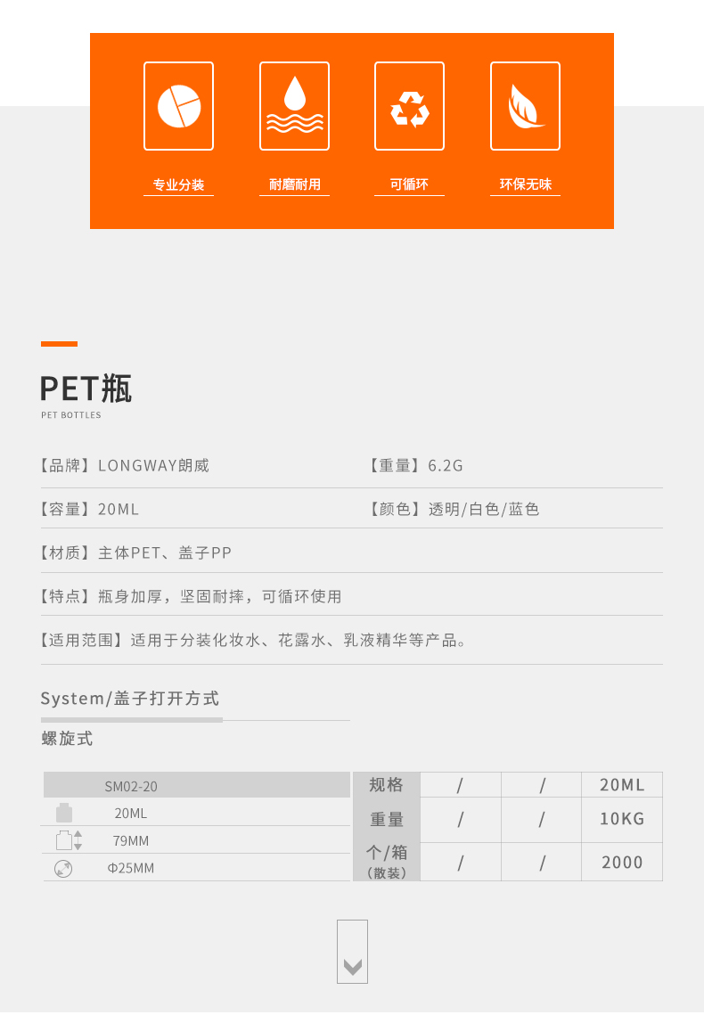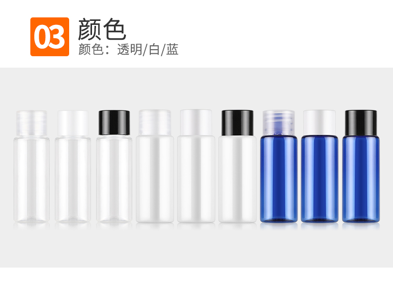 • 规格20ml/透明+透明普通盖  20ml/透明+白色普通盖  20ml/透明+黑色普通盖  20ml/白色+透明普通盖  20ml/白色+白色普通盖  20ml/白色+黑色普通盖  20ml/蓝色+透明普通盖  20ml/蓝色+白色普通盖  20ml/蓝色+黑色普通盖