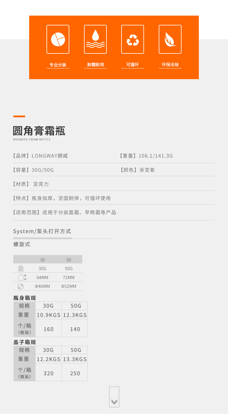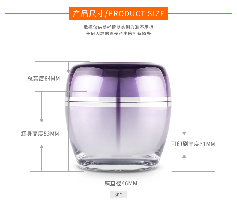 • 产品名称30/50g圆角亚克力膏霜瓶 定制