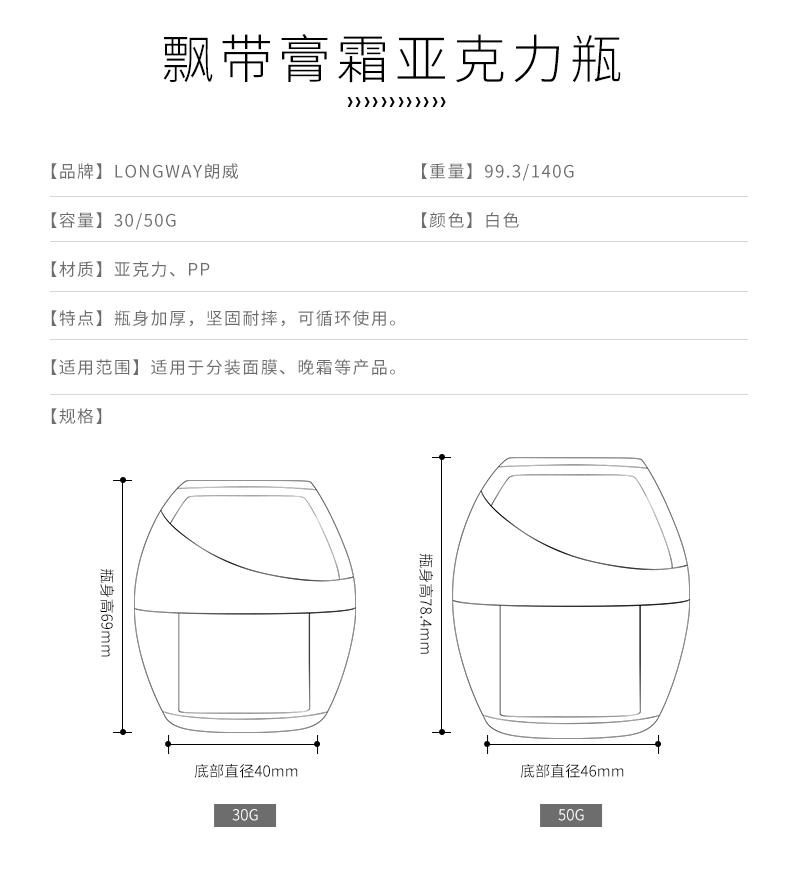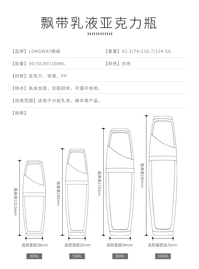 • 产品名称30/50/100ml飘带亚克力乳液瓶